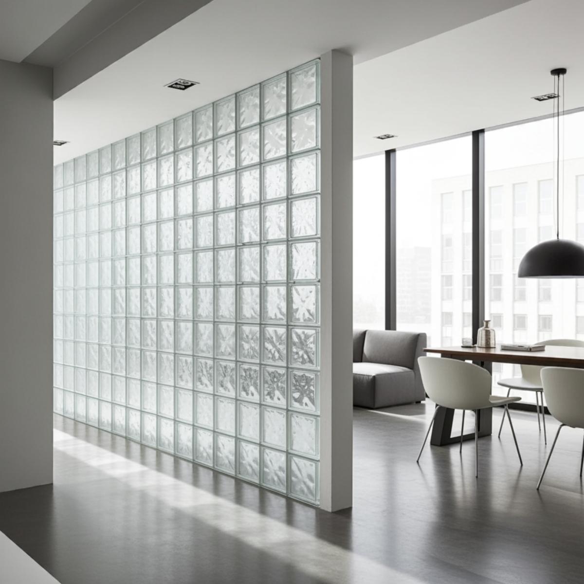 Além da beleza, o tijolo de vidro Tradestar oferece isolamento acústico e resistência mecânica, garantindo segurança e conforto ao ambiente.