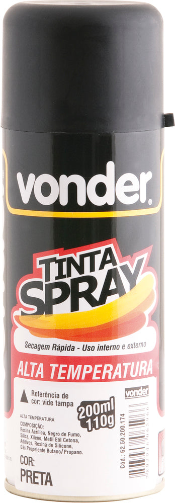 Conteúdo da embalagem 1 Lata de tinta em spray com 200 ml / 110 g Aplicações e dicas de uso Indicada para pinturas em geral, uso externo. Resistente à temperaturas de até 600°C. Destaques e diferenciais Secagem rápida