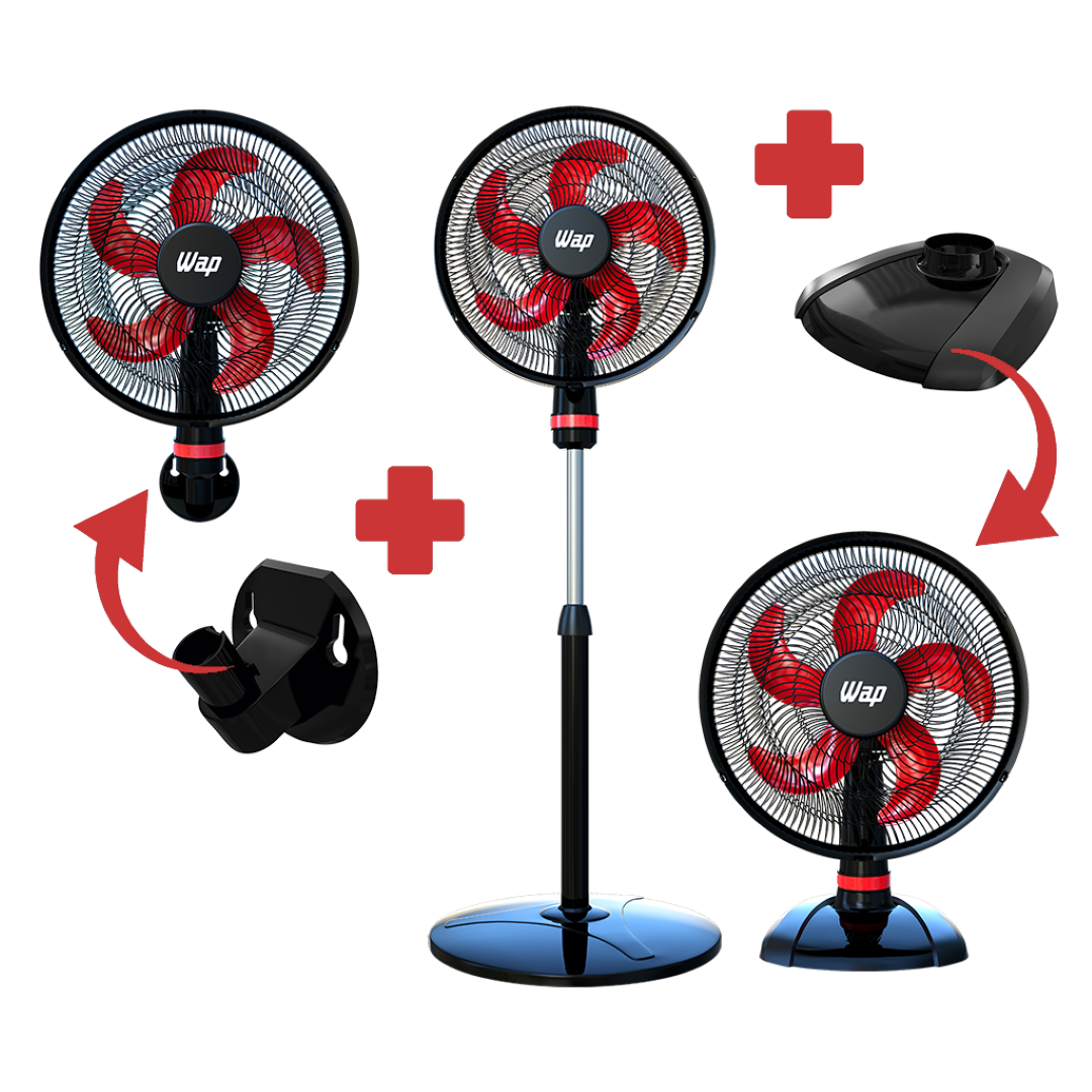 O Ventilador WAP Rajada Turbo W130 3 em 1 com 5 pás e grade de 50 cm, na cor vermelha, possui um design robusto, potente e baixo nível de ruído. Esse produto exclusivo da WAP consegue ventilar ambientes inteiros com menos consumo de energia e mais economia para o seu bolso.